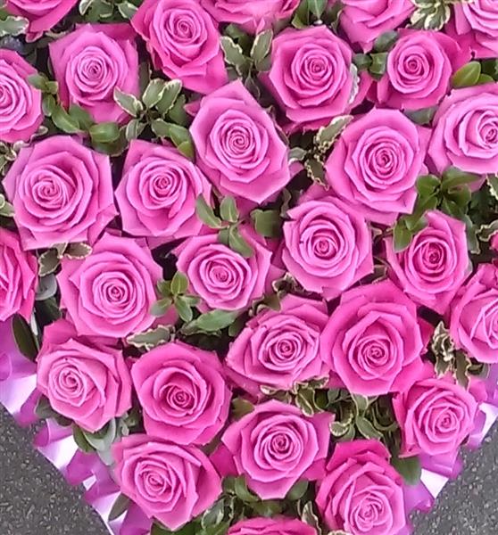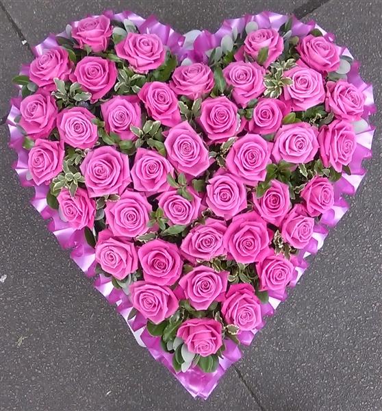 Soft pink roses massed in a heart to show you care. Picture shows Laegw size