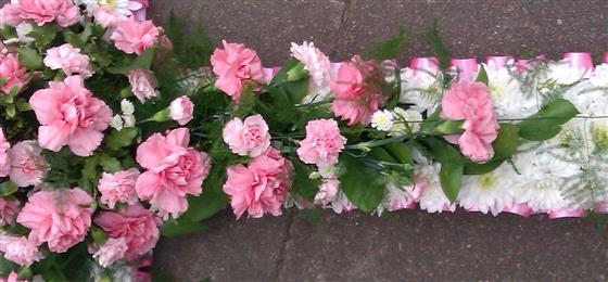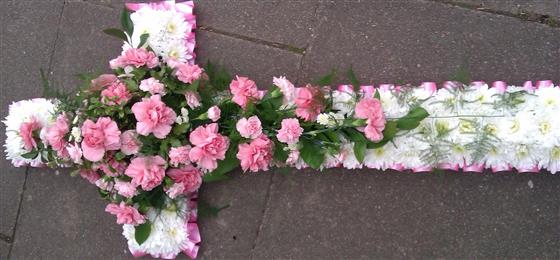 White massed cross with pink edge and spray. Price is for (2'6") 75cm