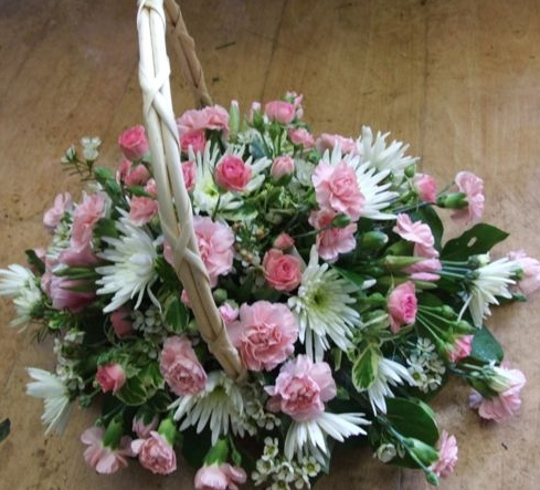 Seasonal flowers are selected for this pretty basket. Other colours available.