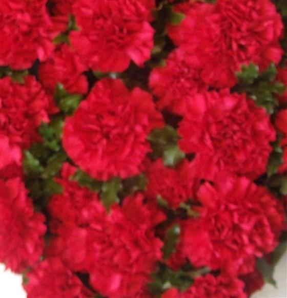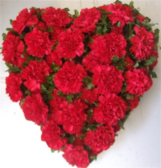 All carnations nestled in rich green in the special heart shape.Medium size 17"